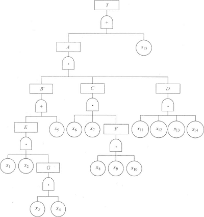 1)定性分析。由图2中的故障树结构可知,此树或与门少,所以从*小径集入手分析较为方便。如图8-45所示,将此故障转换为对偶得成功树。