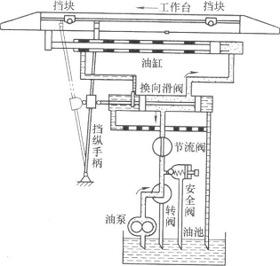 磨床工作台的行程长度由改变挡块的位置来调整(图6)。因此,必须检查挡块固定的可靠性,否则在自动送进打开换向滑阀时,挡块会被推离原位,换向不起作用,砂轮就会撞到前、后工件台或工件的端面卜。