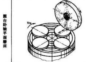 圆型工作台的立轴平面磨床。机床工作时,圆工伟 台作匀速转动uw,砂轮除作高速旋转外,定时作垂直进给,如 M7475B 型磨床: