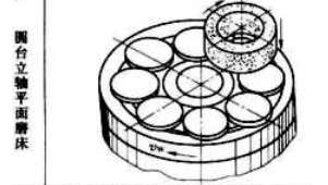 由轴线与工件可连续送料,常用于自动生产线等场合。适用于磨削轴承环、垫圈和活塞环等零件的平面,生产效率极高,如MZ7650