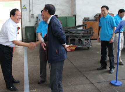 领导们走进一线队伍中,肯定所有一线职工的工作;并与退休老职工亲切握手!