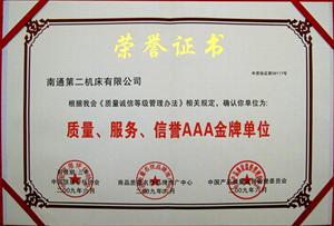 AAA金牌单位证书