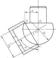 内球面磨削,常采用平形砂轮(P型)进行磨削加工。磨床砂轮外圆直径的大小直接与工件球面大小有关。砂轮的直径DK应等于工件内圆截面中的弦长BC(见图6)。计算砂轮直径的公式与外球面磨削相同。