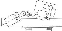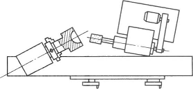 (3)转动砂轮架和头架,使砂轮架、头架与工件球面的相对角度等于砂轮安装斜角。
