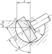 根据磨床磨削原理,通过公式sina=Dk/D求出砂轮安装斜角。