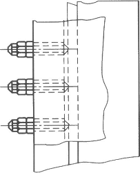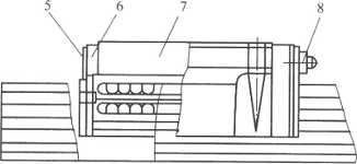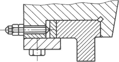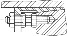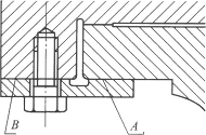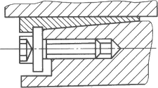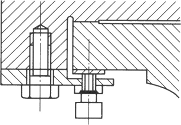 (3)压板镶条调整间隙,如图25所示,T形压板用螺 钉固定在运动部件固定在运动部件内侧和T形压板之间放置斜镶条,镶条不是在纵向有斜度,而是在高度方向做成倾斜。调整时,借助压板上儿个推拉螺钉使镶条上下移动,从而调整间隙。